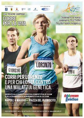 ACERRA – L’A.GE Acerra di concerto con gli assessorati alla pubblica istruzione e allo sport del comune promuove il giorno 29 aprile (inizio ore 10) presso la sala dei conti del castello baronale una giornata volta alla sensibilizzazione e alla conoscenza delle malattie genetiche in vista della maratona ”WALK OF LIFE” che si correra’ a Napoli il 4 maggio (gara non competitiva).