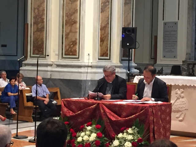 ACERRA – “Facciamoci allenare da Gesù”. Dopo il grande Giubileo degli Sportivi dello scorso maggio questa sera, nella Sala Teatro adiacente la Cattedrale di Acerra, il vescovo di Acerra monsignor Antonio Di Donna torna ad incontrare centinaia di atleti tra associazioni sportive, scuole e parrocchie della Diocesi in preparazione al Natale e in nome dei giovani senza lavoro, dei ragazzi a rischio o morti a causa del cancro. Ultimi in ordine di tempo, Marika, giovane bellissima di 21 anni di Santa Maria a Vico, in provincia di Caserta ma territorio della diocesi, Antonio e Davide – di 31 anni appena sposato e con una bimba in arrivo il primo, di soli sette mesi il secondo – entrambi di Acerra.