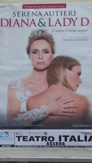 Il Teatro Italia di Acerra, giovedì 23 marzo, alle ore 20,30, accoglierà la straordinaria Serena Autieri con lo spettacolo musicale “Diana & Lady D”, prima opera teatrale al mondo sulla vita della principessa triste, scritto e diretto da Vincenzo Incenzo e prodotto da Engage. Serena Autieri inscena una performance verbale e fisica dai contrasti sorprendenti, facendoci rivivere l’ultima notte della principessa del popolo in un flusso di coscienza intenso e poetico, dove lampeggiano l’infanzia difficile di Diana, la stagione felice dell’adolescenza, la vita controversa con Carlo, le maestose cerimonie reali, le raggianti apparizioni nella moda e nella mondanità, il volontariato spettacolare, i discutibili amanti, la solitudine e il dramma. Fino al sorprendente, spettacolare epilogo, che colpirà il cuore di ogni spettatore. Il palco si fa luogo dell’anima e nostalgico “dopomondo” grazie al disegno scenico del Premio Oscar Gianni Quaranta (migliore scenografia per il film “Camera con vista” nel 1986); le luci di A J Weissbard (Bob Wilson, Cronenberg, Sten, Greenaway), inventano suggestioni intense sdoganando spazio e tempo; le cadute e le resurrezioni vengono tratteggiate dalle ballerine di Bill Goodson (Diana Ross, Gloria Estefan, Stevie Wonder, Moulin Rouge).