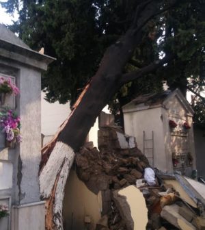 Alberi abbattuti e cappelle danneggiate. Colpita anche la tendostruttura di via Manzoni.