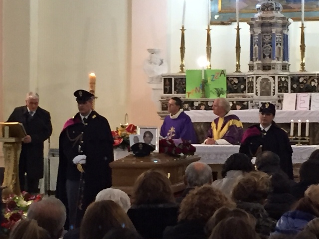 “Pasquale era un uomo allegro e solare – il ricordo di don Fabio durante l’omelia rivolgendosi alla moglie Carmela e alle figlie Grazia e Martina – che apprezzava anche le difficoltà del quotidiano perchè apprezzava ciò che Dio ci dà. Un uomo sempre disponibile, di una generosità eccezionale, una missione di chi indossa la divisa per un servizio disinteressato”.