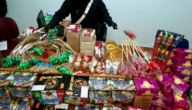 ACERRA – I carabinieri delle stazioni di Acerra e San Vitaliano con il supporto di colleghi del nucleo artificieri antisabotaggio del Comando Provinciale di Napoli hanno scoperto nel garage di un 33enne di Acerra 185 chili di fuochi pirotecnici di quarta e quinta categoria. L’uomo è stato denunciato.