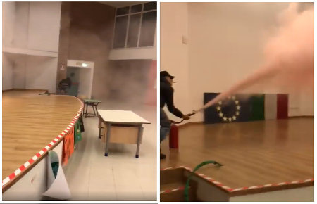 E’ successo l’altra notte all’auditorium della Ferrajolo-Siani: estintori svuotati. I quattro ragazzi si sono anche filmati.