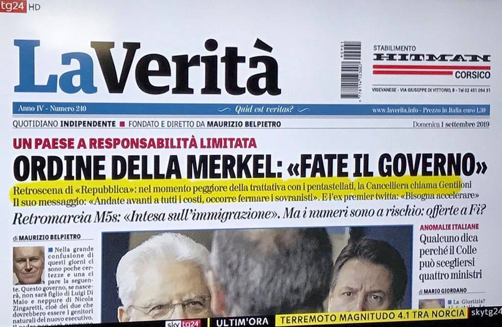 Secondo la Repubblica, al Nazareno sarebbe arrivata la telefonata della Cancelliera tedesca Angela Merkel, probabilmente tramite l’ex premier Paolo Gentiloni per ribadire la necessità di dare vita al Conte-bis con lo scopo di fermare i sovranisti.
