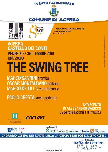 E’ quanto previsto per questa sera ad di Acerra, dove l’Associazione Scarlatti, col patrocinio del Comune di Acerra, organizza nella splendida cornice del Castello dei Conti il concerto della band ‘The Swing Tree’, composta Marco Sannini alla tromba, Oscar Montalbano alla chitarra e Marco De Tilla al contrabbasso. Voce recitante Paolo Cresta, che porterà in scena alcuni brani di Novecento, famoso monologo teatrale di Alessandro Baricco poi divenuto un best seller dal quale è stato tratto il film ‘La leggenda del pianista sull’Oceano’.