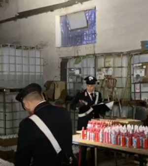 I militari, in procinto di controllare un soggetto sottoposto agli arresti domiciliari, hanno notato il movimento sospetto di due uomini che, alla loro vista, si sono rifugiati in un un capannone. Insospettiti dal loro comportamento, i Carabinieri li hanno seguiti e – una volta all’interno dello stabile – hanno scoperto un impianto illegale di produzione di detersivi di circa 400 mq. Oltre ai flaconi di liquido per la sanificazione delle mani anche decine di cisterne impilate lungo il perimetro del locale: al loro interno – in preparazione – prodotti destinati con ogni probabilità al mercato parallelo dei detergenti per la casa ed il bucato. Il titolare, un 53enne originario della provincia di Avellino, è stato denunciato per frode in commercio, smaltimento illecito di rifiuti e scarico in fogna di rifiuti pericolosi: i liquidi di scarto della produzione erano infatti scaricati indiscriminatamente nella fogna pubblica.