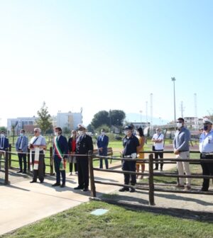 ACERRA – Tra il ricordo del passato e la proiezione alla città del futuro il 29 agosto 2020 ha rappresentato per Acerra una data  a suo modo nuovamente storica. E’ stata aperta al pubblico, infatti, la nuova area verde del Parco Comunale di via Manzoni, un polmone verde in pieno centro. Un struttura che si sviluppa su circa 20mila mq, con un percorso naturalistico ambientale attraverso essenze arboree, spazi dedicati al tempo libero, ben due aree attrezzate a parco giochi per i bambini, un’area spettacolo ed eventi e aree sportive. Un luogo dove passeggiare all’aria aperta, sedersi per leggere e contemplare la vegetazione, le attività di gioco di altre persone e instaurare contatti sociali attraverso la discussione e il gioco. Particolare importanza è stata data al posizionamento delle attrezzature di gioco in relazione allo spazio e per garantire anche soluzione per il superamento delle barriere architettoniche dei bambini diversamente abili, promuovendo l’integrazione e la socializzazione. Realizzata anche un’area fitness, un percorso sportivo calisthenics, per chi voglia trascorrere più tempo all’aperto cogliendo così l’occasione per prendersi cura del proprio benessere psico-fisico. Alla cerimonia, causa misure antiCovid hanno partecipato pochissime autorità civili e religiose: