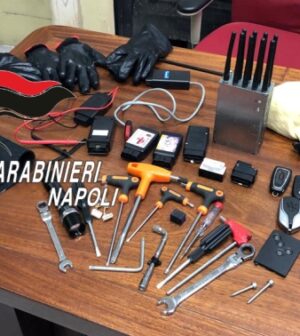 Tra la strumentazione utilizzata per i furti, rinvenuta e sequestrata dai carabinieri: chiavi vergini con cui sostituire le originali, telecomandi, jammer e dissuasori per i sistemi di allarme e di rilevazione GPS.