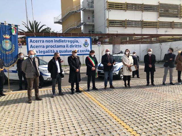 Naturalmente siamo qui per essere vicini al Comune di Acerra e a tutti i cittadini e per dare anche un segnale forte e di presenza. L’obiettivo di tutti noi, questa mattina, è riaffermare non la legalità in quanto tale ma il vivere civile. Conosciamo l’impegno dell’amministrazione comunale, della polizia municipale come di tutte le altre forze dell’ordine sul territorio di Acerra, sui temi della trasparenza e della legalità, della lotta alla Camorra. I cittadini, la gente perbene di Acerra, la stragrande maggioranza, rifiutano nettamente il vile linguaggio della camorra”.