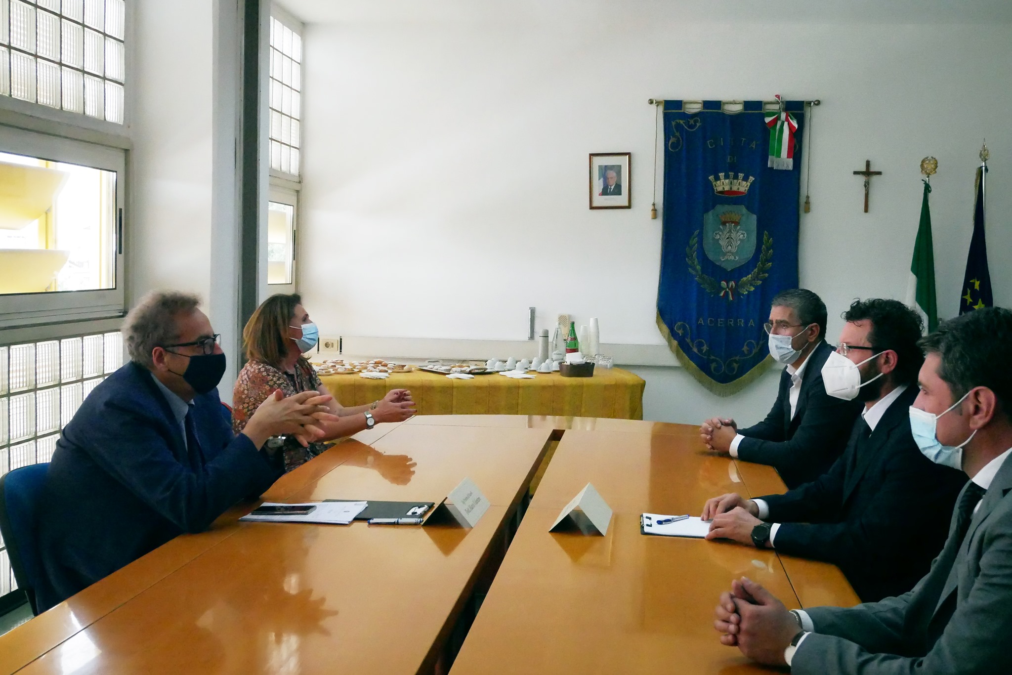 Nella mattinata odierna il Prefetto di Napoli, Marco Valentini, ha svolto una visita istituzionale presso il comune di Acerra. Il primo incontro si è svolto presso la Curia vescovile con il Vescovo, Mons. Antonio Di Donna. Nel corso del colloquio sono state affrontate tematiche di interesse comune, in particolare relative ai problemi sociali e ambientali nel contesto di riferimento.