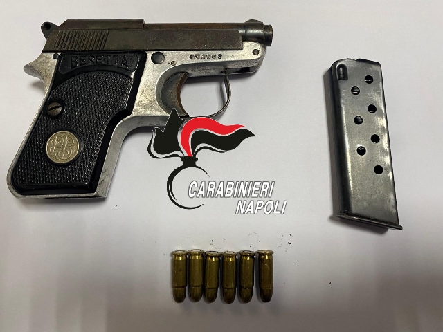 Durante un controllo in strada, nei pressi di piazza San Pietro, è stato trovato in possesso di una pistola Beretta Tomcat con matricola abrasa e 6 colpi calibro 6.35mm nel caricatore.