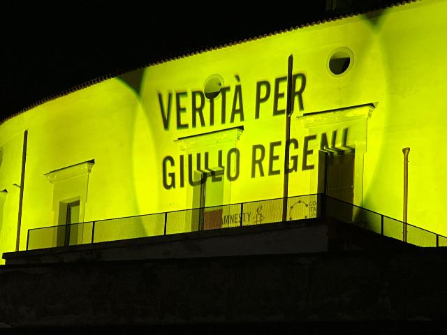Ieri sera l’amministrazione comunale di Acerra ha acceso di giallo il Castello dei Conti per ricordare il ricercatore italiano ucciso in Egitto.