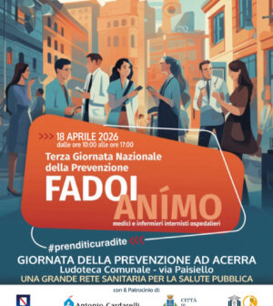 ACERRA – Tutela della salute pubblica, Acerra ‘Città della Prevenzione’. La Città di Acerra, infatti, rientra tra le 23 piazze italiane scelte per la Terza Edizione della Giornata Nazionale della Prevenzione, l’iniziativa promossa da FADOI (Federazione delle Associazioni dei Dirigenti Ospedalieri Internisti) e ANÌMO (Associazione Nazionale Infermieri di Medicina Interna).